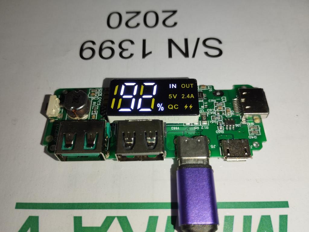 Soldered to a power bank whose display was broken. Everything works Addition: after 4 months it still works, the indicator shows correctly.