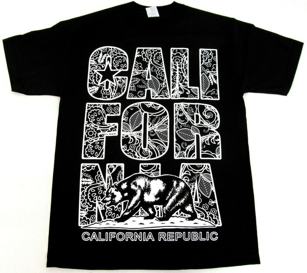 California Unisex T-shirt Paisley Bandana Cali Republic Bear TeeBlack
