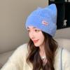 Women Cute Cat Ear Winter Hat Fashion Faux Fur Knitted Hat Kpop Style Soft Beanie Hats Female Candy Colors Streetwear Cap