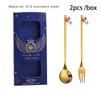 HANYANG Stainless Steel Christmas Dessert Spoon and Fork Gift Set Fruit Fork Father Christmas Coffee Spoon Hotel Household Tableware