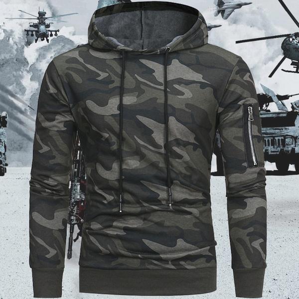 Autumn and Winter Mens Military Hoodies Hooded Sweatshirt Zip Casual Sports Camo Hoodie Pullover Camouflage Sweater Coat Plus Size