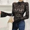 Women's Lace Top Slim Fit Base Layer Shirts Casual T Shirt Autumn Outfit Flare Sleeve Half Turtleneck Top