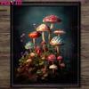 Dark Forest Mushroom And Vintage Pink Roses Vintage Wall Art Print Dark Botanical Witchcraft Gothic Art Poster Print Decoration No Frame