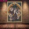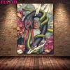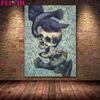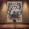 Skeletons,Flowers & Mysterious Animals Vintage Wall Art Canvas Painting Bat Opossum,Astrology Moon Stars Planets Poster Print No Frame