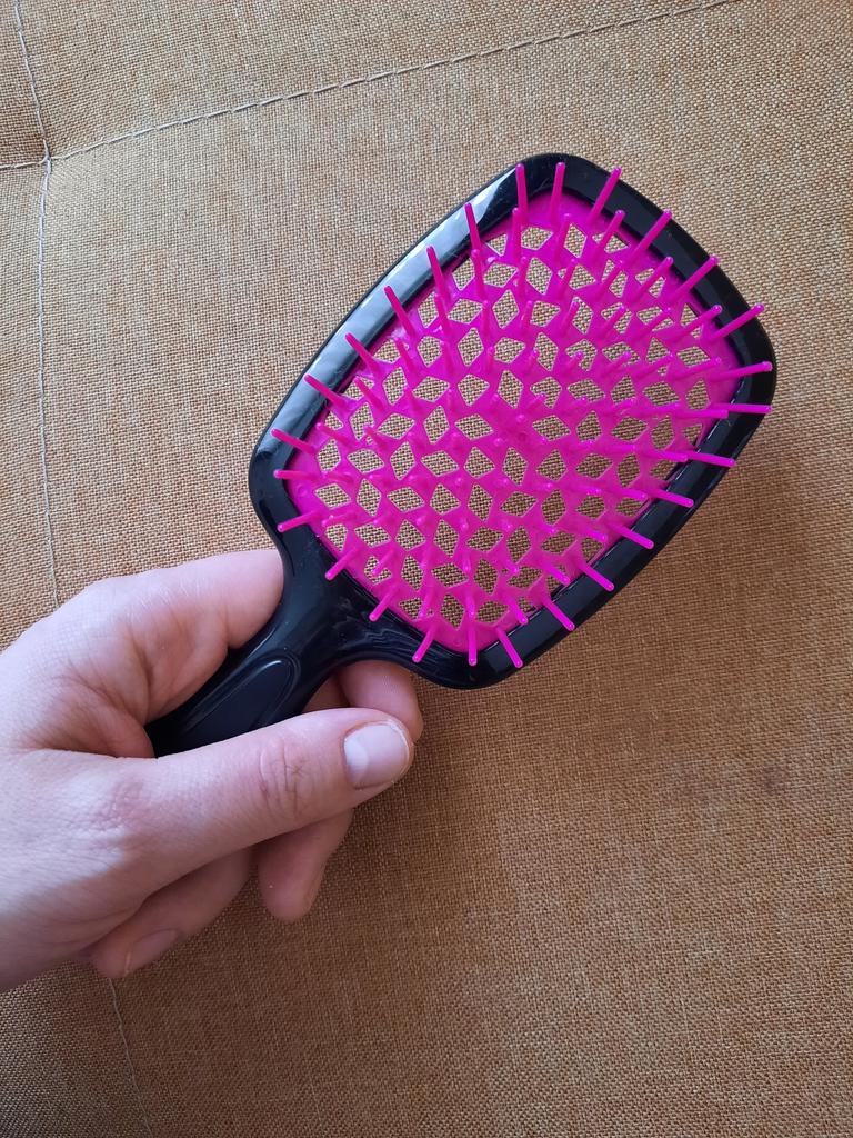 Introducing the comb, a colorful spliced massage grid comb designed to fit the curve of your head and provide a comfortable scalp massage while combing your hair. Its hollow structure allows for easy attachment to a hair dryer, directing hot air to your hair for quick and efficient drying. With its proper density, this comb is perfect for detangling both curly and straight hair, reducing tangles and pulling. Suitable for all hair types, wet or dry, it is ideal for women, men, and children alike. From straight to curly hair, extensions to wigs, this comb caters to everyone's needs. Whether you're at home, in a hair salon, or at school, this fluffy styling comb is a must-have. Its square hollow design ensures convenience and prevents tangling. Upgrade your hair care routine with the comb today!
