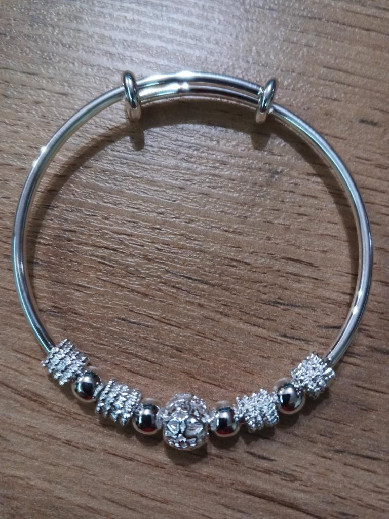 Looks very beautiful on the hand, the diameter is adjustable -- convenient. I bought my teenage daughter many different sterling silver items, I can't resist! I suggest she wear several bracelets and chains at once -- silver "withstands" this, it looks wonderful and fresh! Especially on the young! If necessary, I clean it with toothpaste -- it shines again! Thank you.