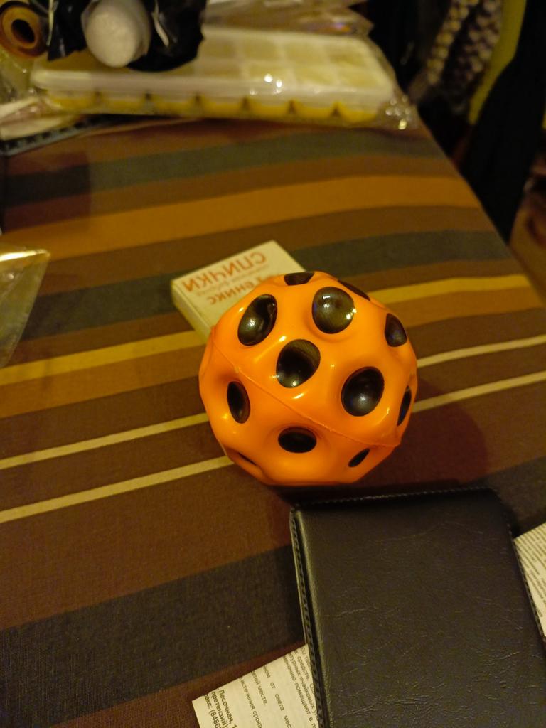 Big, bright. I train my hands with it. I squeeze it. I didn't give such a toy to the cat, it's too bright. Children can play with it on the playground.