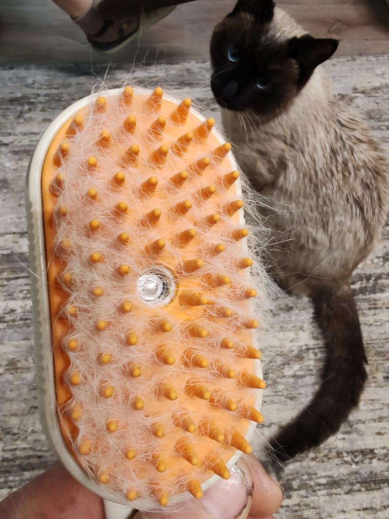 I received it, but I still haven't figured out how it works. I'll add, the brush works, the cat didn't get scared. It's not noisy, only the steam hisses quietly, the cat just looked around to see what it was and sat calmly while I tried to comb it.