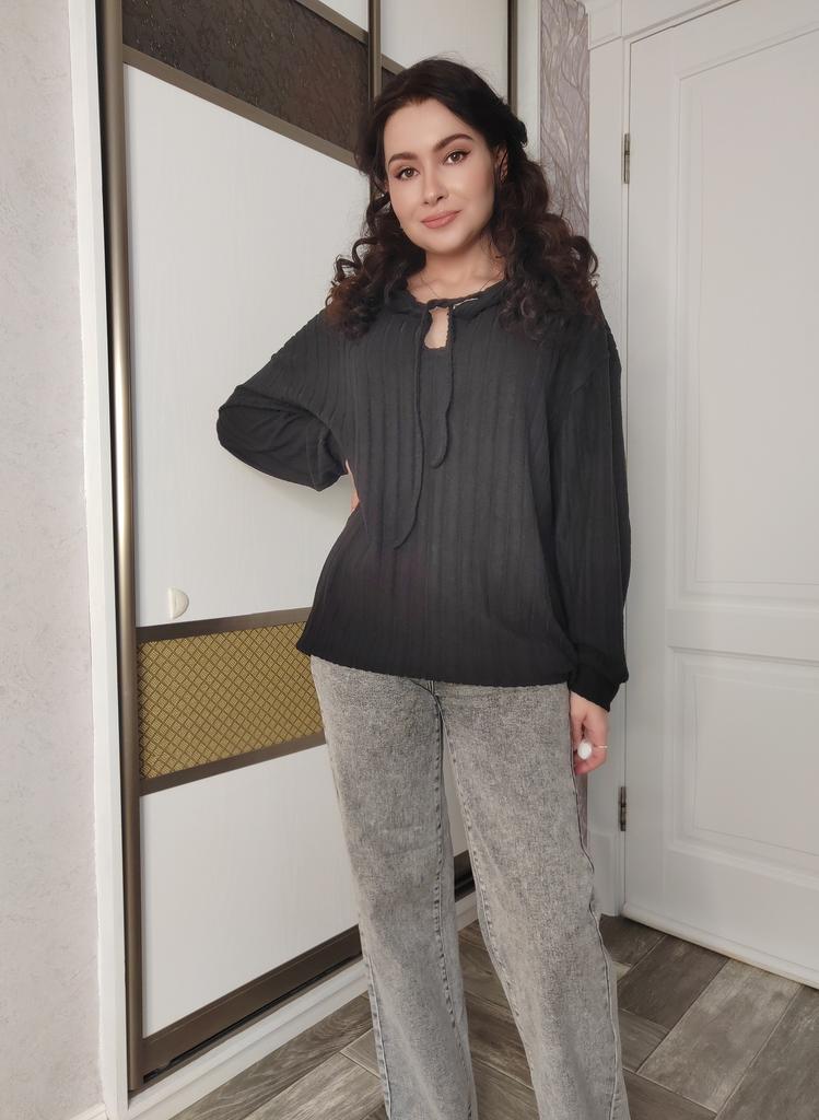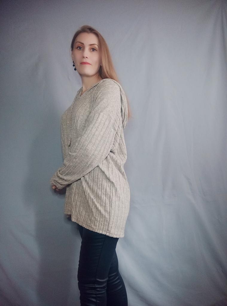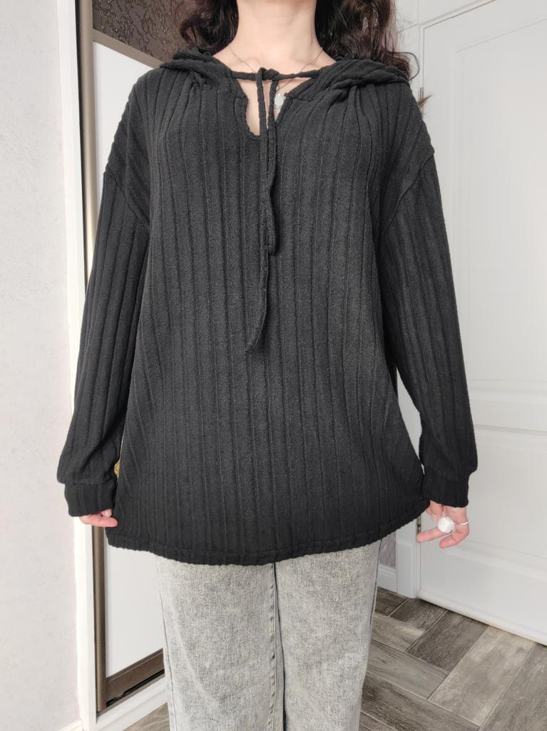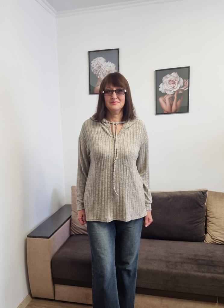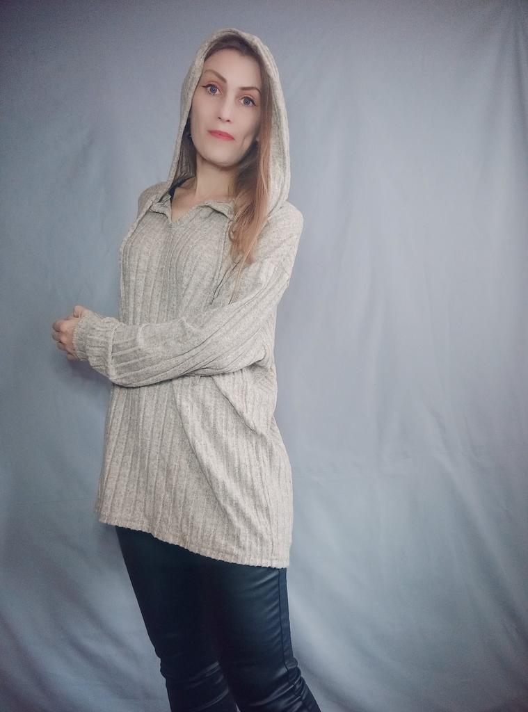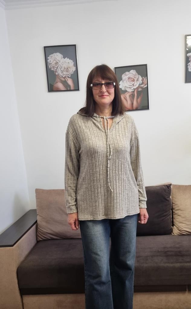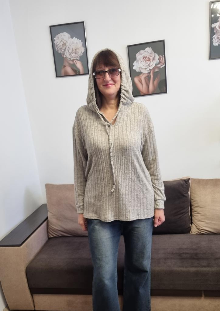 This shirt is a great choice for women looking for an everyday, comfortable, and flattering item of clothing for the autumn season. The loose fit together with the V-neckline create a light look that flatters a variety of body types, especially in larger sizes.. The long sleeves and hood give the shirt a casual and practical touch – perfect for cool days. The material (polyester) is lightweight, comfortable against the skin, and easy to maintain – suitable for those who don't want to deal with ironing or overly delicate washing.. The basic colors like black, pink, and khaki allow easy pairing with any bottoms – jeans, leggings, or a skirt. This is a versatile item suitable both for home, for running errands, and for a casual outing.. Bottom line: an everyday, practical, and comfortable shirt, with a design touch that conveys modernity without sacrificing comfort.