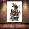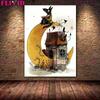 The Haunted House Of The White Ghost Wall Art Canvas Print Gothic Miniature Witch And Mysterious Animal Poster Print Decoration No Frame