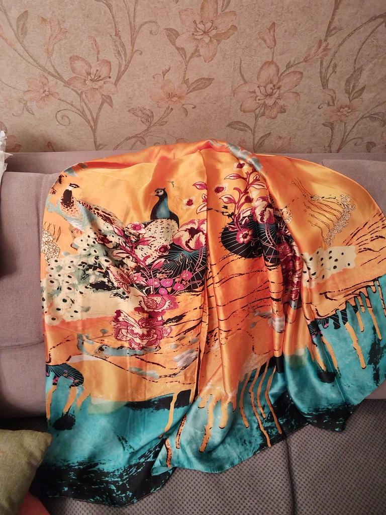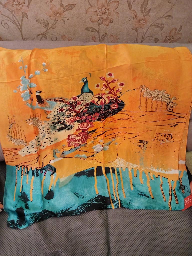 Print Scarf Peacock Flower Pattern Female Yellow Vintage Shawl