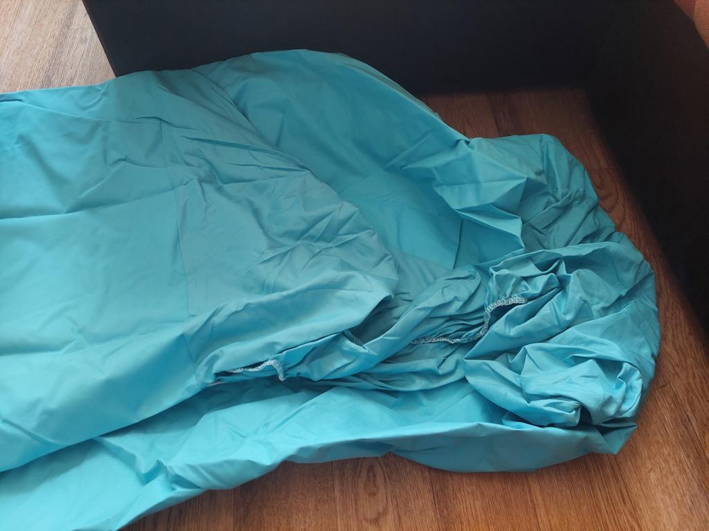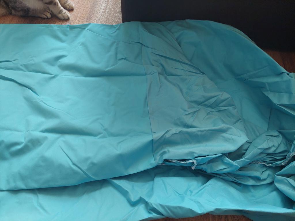 I received a rather interesting sheet... The sides are made of ordinary fabric and the horizontal plane is made of fabric with an additional waterproof layer. Thanks Joom for interesting stuff!