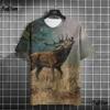 3d Animal Print Men's T-Shirt Deer Pattern Tops Fashion Street Short Sleeve Crew Neck Pullover Oversized Men's Clothing
