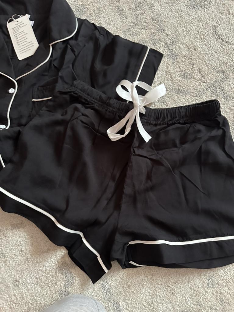 Women’s Sleeping Suits Rayon Short Sleeves Pajamas Button Up Piped Shirt and Shorts 2 Pieces Set Summer Home Night Sleep Casual Lounge Wear
