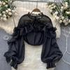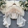 Ruffle Chiffon Blouse Summer Women Lantern Sleeve Fashion Slim Loose Vacation Ladies Y2K Casual Chic Tops