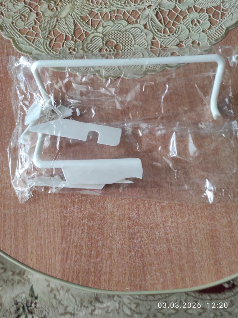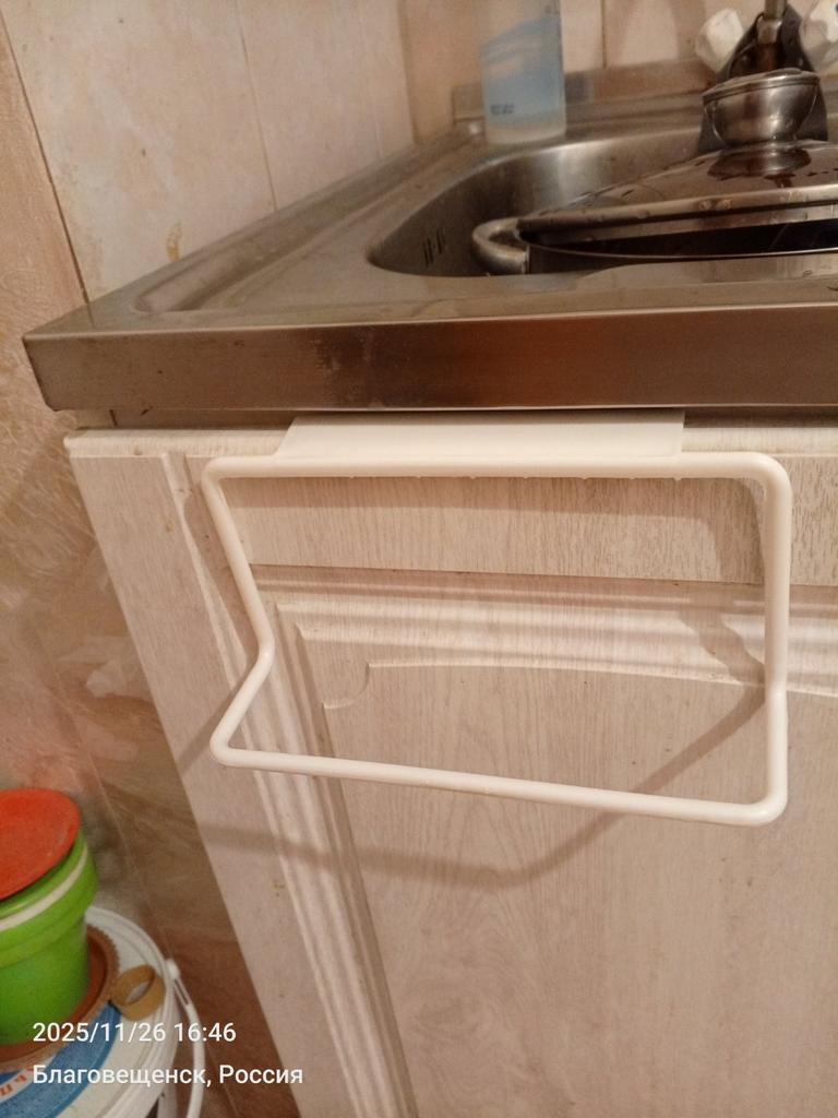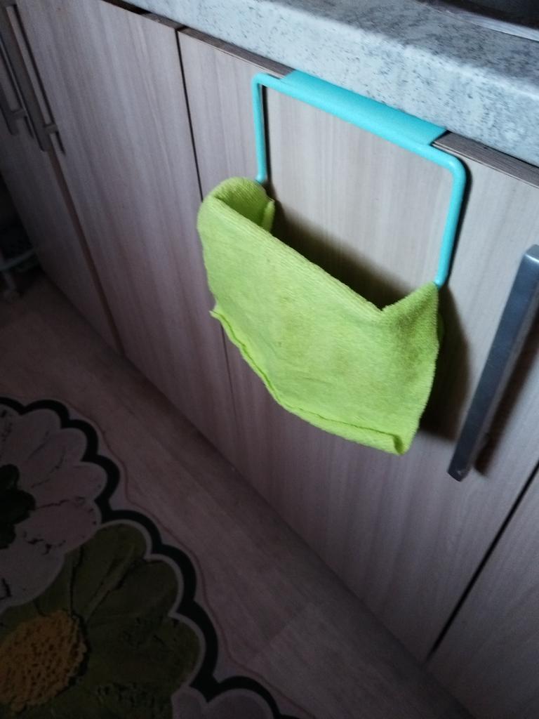 The kitchen hanger is really only suitable for light cloths or towels, not for anything more serious. Plastic. Slightly crooked.
