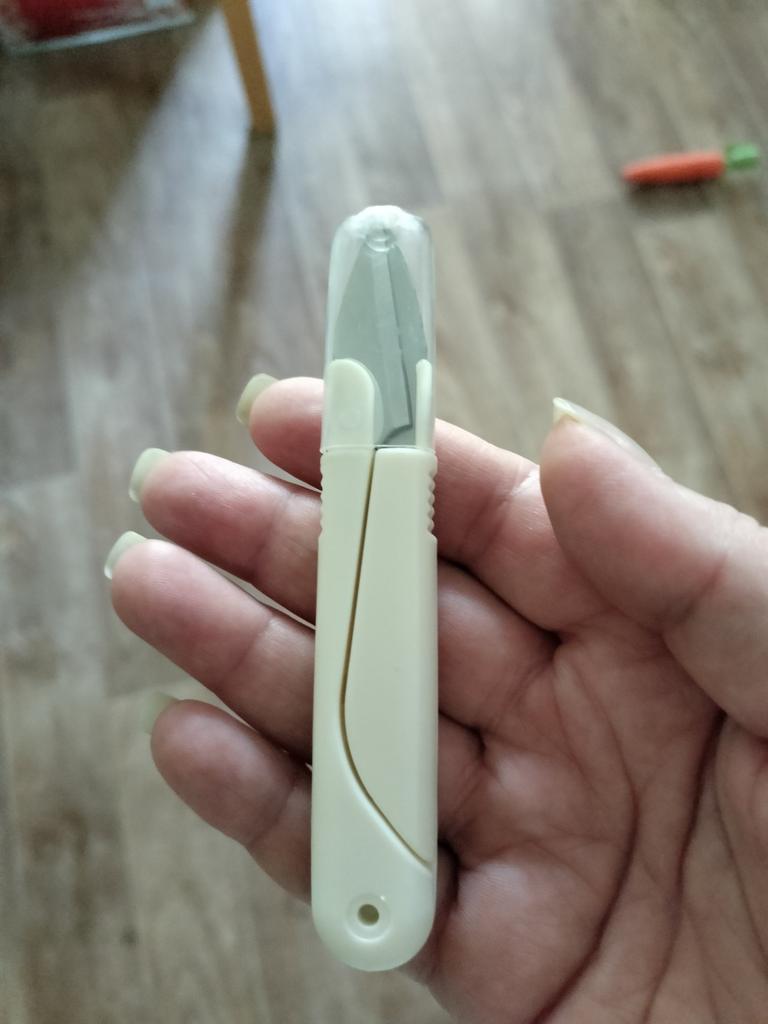 The scissors are cute, with a cap, sharp, a bit stiff though, but maybe they will loosen up with time, thank you