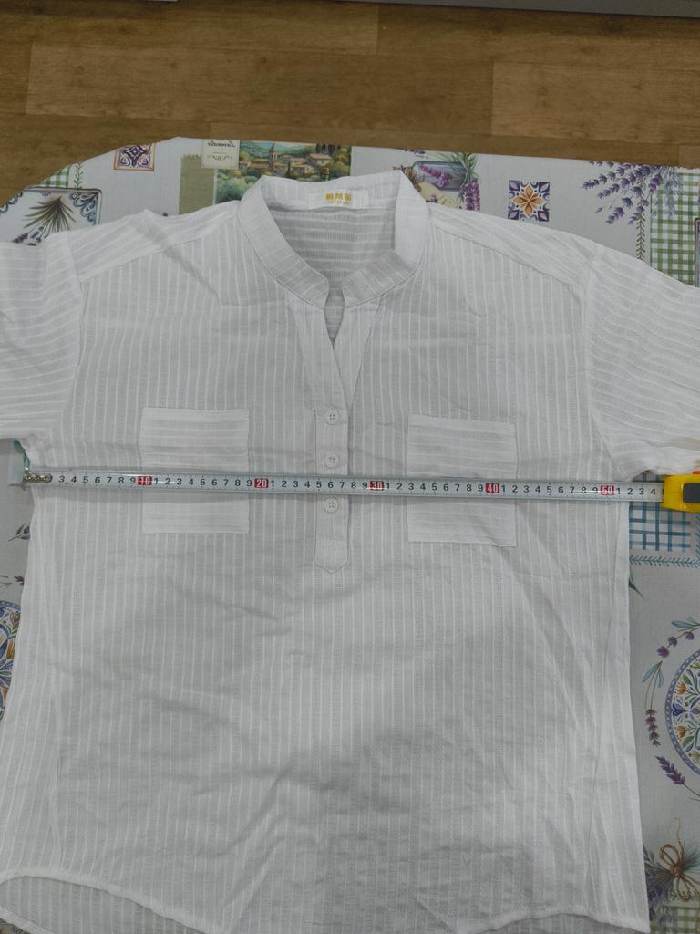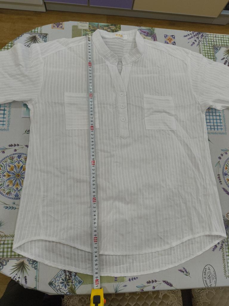 Size L fit my 44-46 year old. The sleeves are a little narrow, I would like them to be wider, the length is just right. Neatly sewn. The color is white. The fabric is natural, breathable. I am satisfied with the purchase. I must add that it settles very strongly after 1-2 washes. The length of the sleeve has decreased by 4 cm. I usually turn up the sleeves, so this is not critical for me. The overall length has also decreased, but it is not as noticeable as the sleeves. Consider this when choosing.