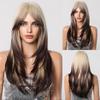 LOUIS FERRE Ombre Blonde Black Wigs for Women Long Straight Layered Wigs With Bangs Heat Resistant Fiber Synthetic Wig for Daily
