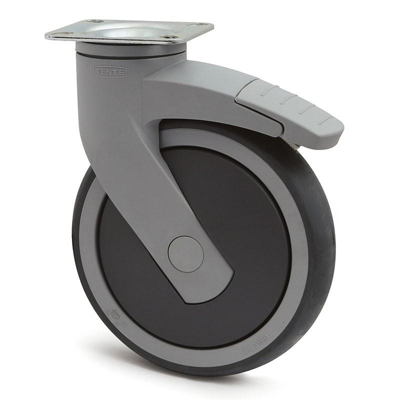 TENTE LEVINA SWIVEL WHEEL Ø150 PLASTIC 77x67 RUBBER RIMS WITH BRAKE TENTEPRENE RUBBER RIMS. N/POLYPROP. ANTITHREAD.