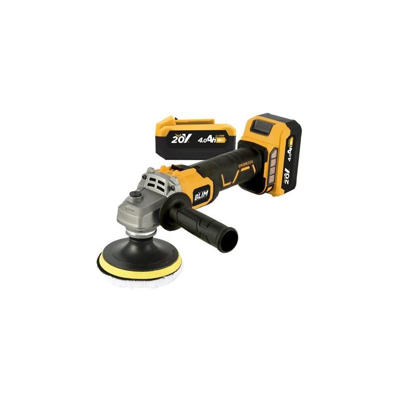 Blim Radial a Bateria 115mm 20V 4Ah + Kit de Pulido - Motor sin Escobillas - Velocidad 1000/3000/4500/8500rpm - Agarre Ergonomico -BL0199