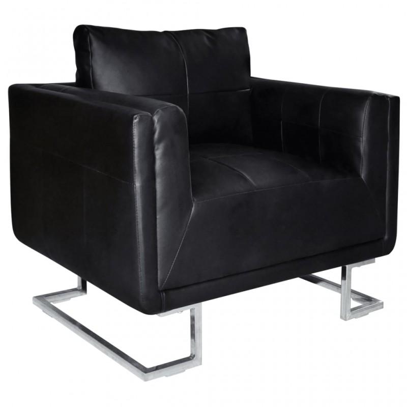 Día Y Noche - Día Y Noche Armchair with Chrome Legs, Black Synthetic Leather