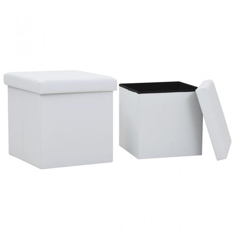 Day and Night - Day and Night Folding Storage Stools 2 Pcs White Synthetic Leather