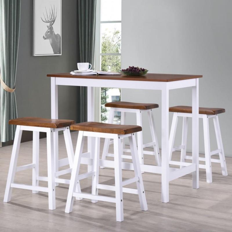 Día y Noche - Día y Noche Juego de mesa alta y taburete de cocina 5 pzas madera maciza