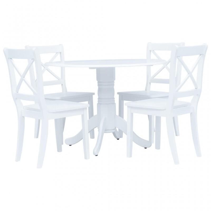 Día y Noche - Día y Noche Conjunto de comedor 5 piezas madera maciza de caucho blanco