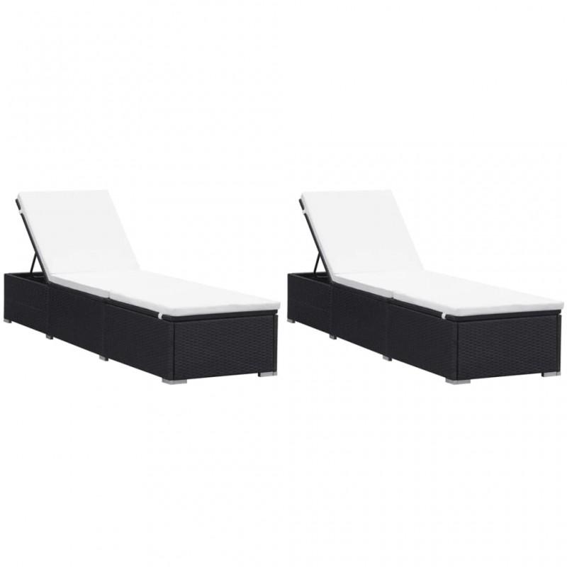 Day and Night - Day and Night Loungers with Cushions 2 Pcs Black Synthetic Rattan