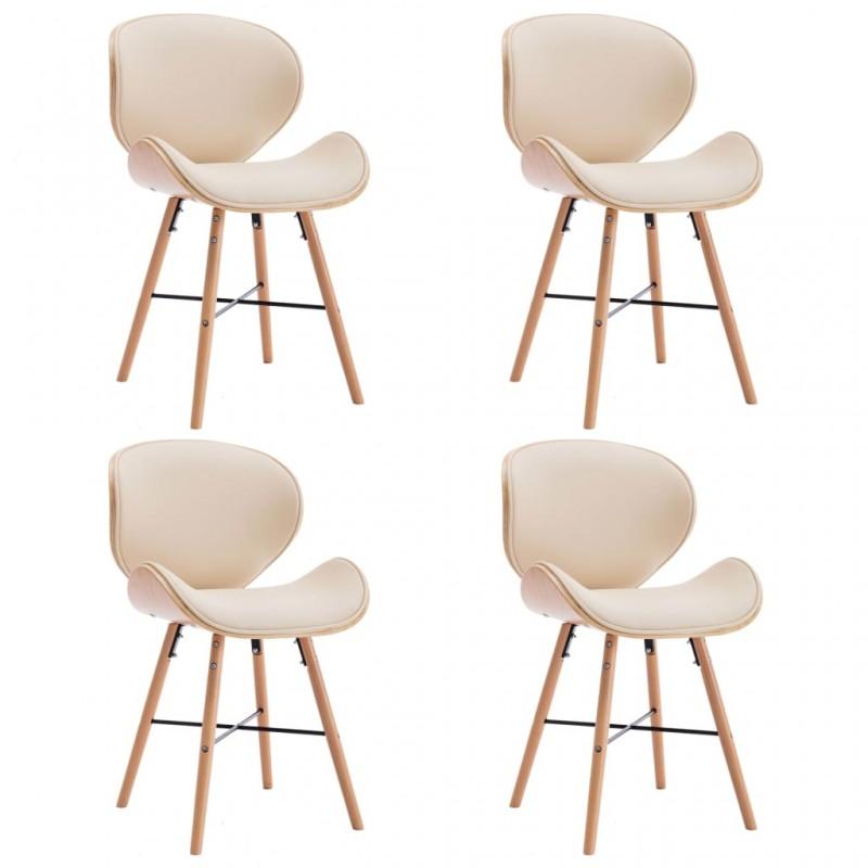 Día y Noche - Día y Noche Sillas de comedor 4 uds cuero sintético y madera curvada crema