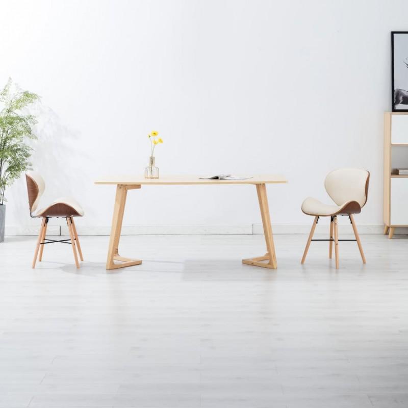 Día y Noche - Día y Noche Sillas de comedor 2 uds cuero sintético y madera curvada crema