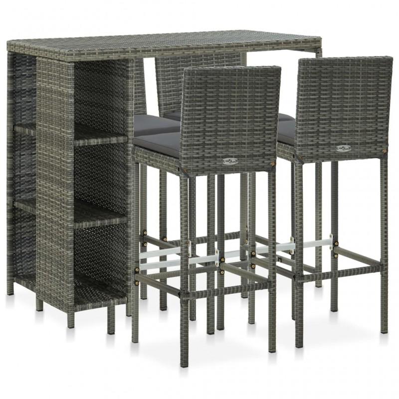 Day and Night - Day and Night 5-piece Garden Bar Set and Gray Synthetic Rattan Cushions