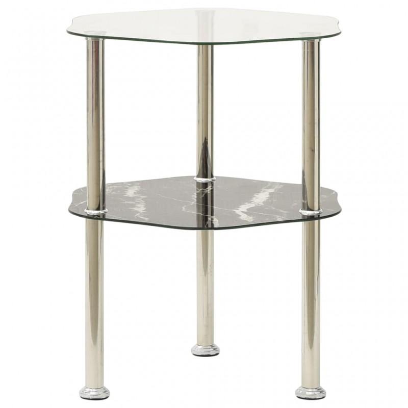 Day and Night - Day and Night Side Table 2 Levels Transparent and Black Glass 38x38x50 Cm