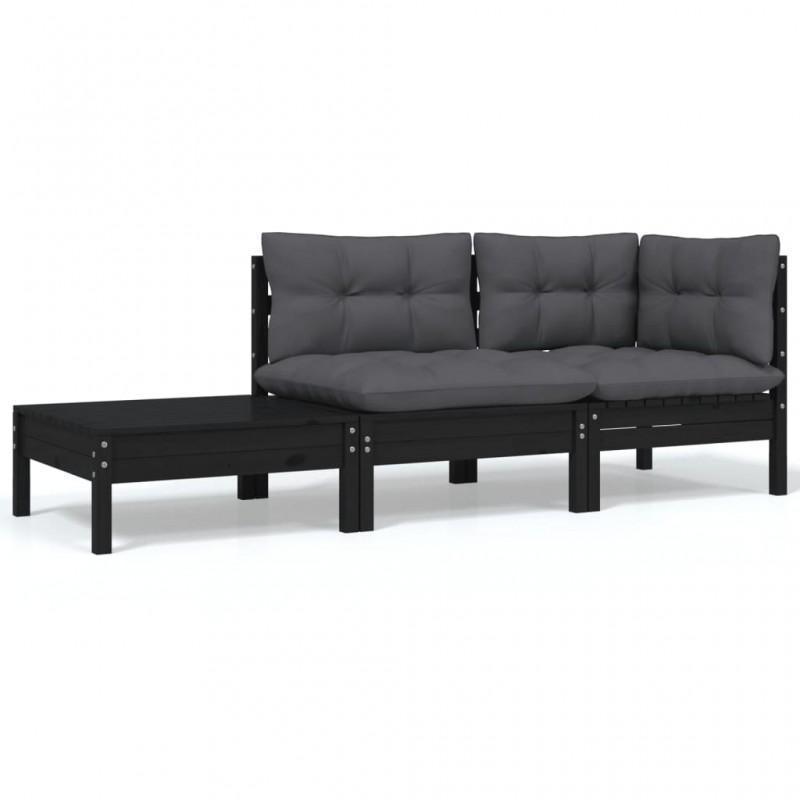 Day and Night - Day and Night Garden Furniture Set 3 Pieces and Black Cushions Solid Pine Wood