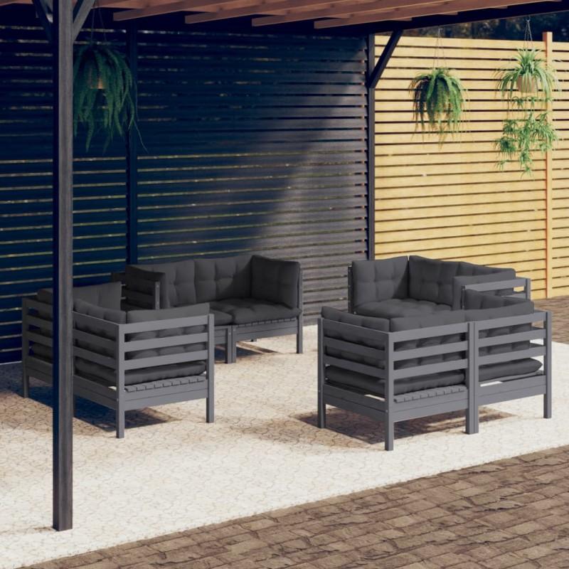 Día y Noche - Día y Noche Muebles de jardín 8 pzas con cojines antracita madera de pino
