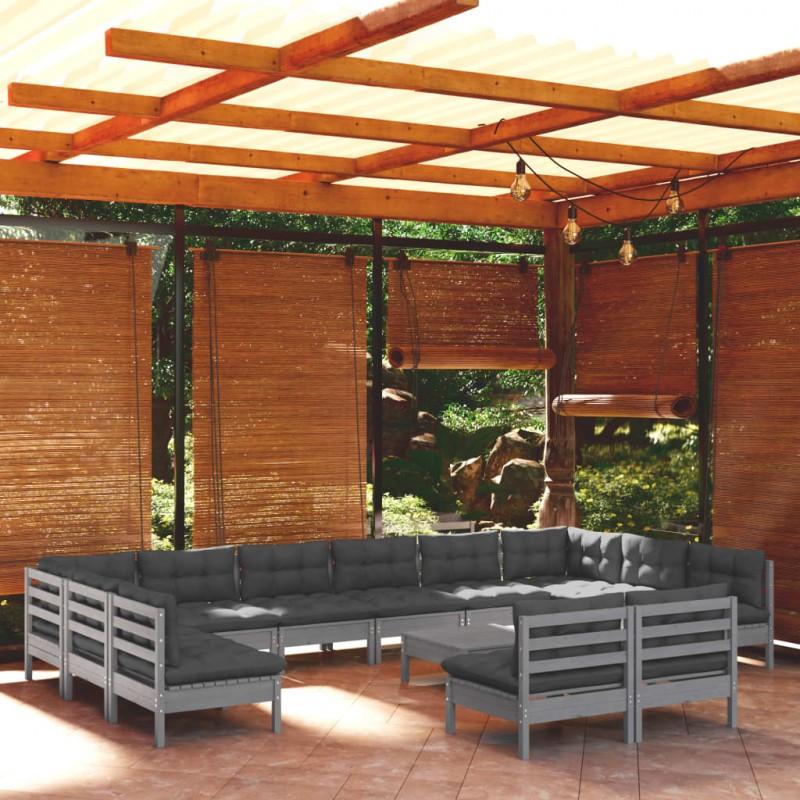Day and Night - Day and Night Garden Furniture 13 Pieces and Gray Cushions Solid Pine Wood