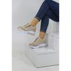 Women's Wedge Heeled Zippered Silvery Sneakers