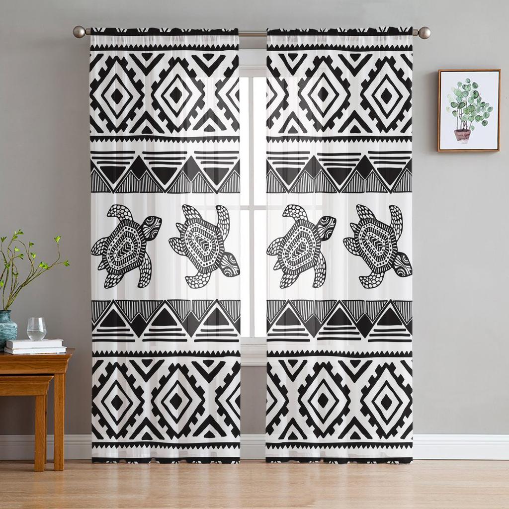 Animal Turtle Black And White Lines Tulle Curtains For Living Room Kitchen Sheer Voile Curtain Bedroom Window Panels
