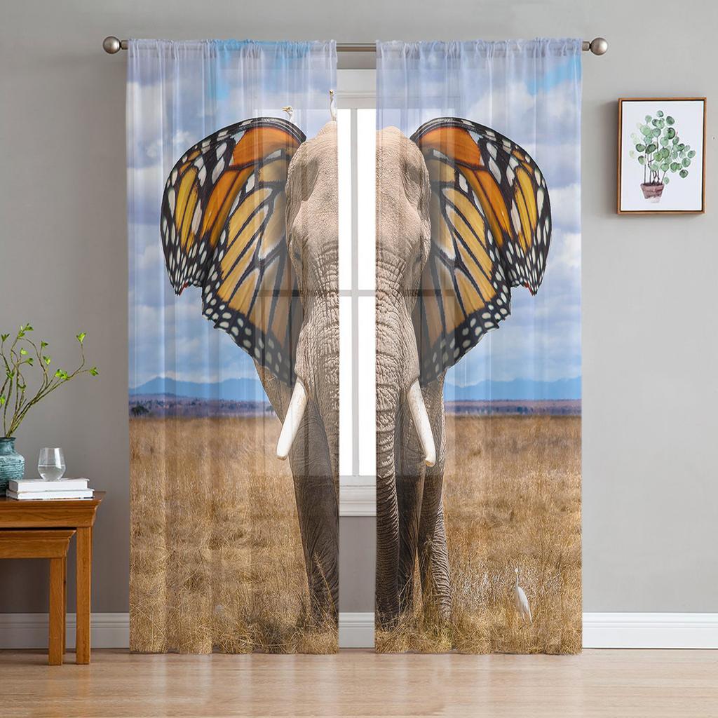 Elephant Butterfly Ears Abstract Tulle Curtains For Living Room Decoration Modern Chiffon Sheer Voile Kitchen Curtain
