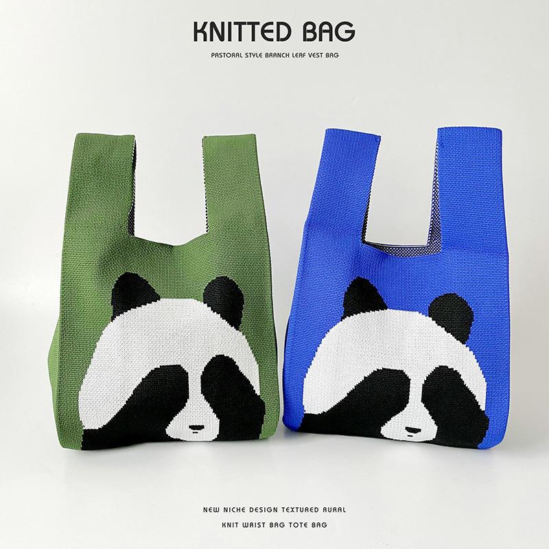 Niche Design Cute Panda Large Capacity Knitted Shoulder Bag Tote Travel Bag