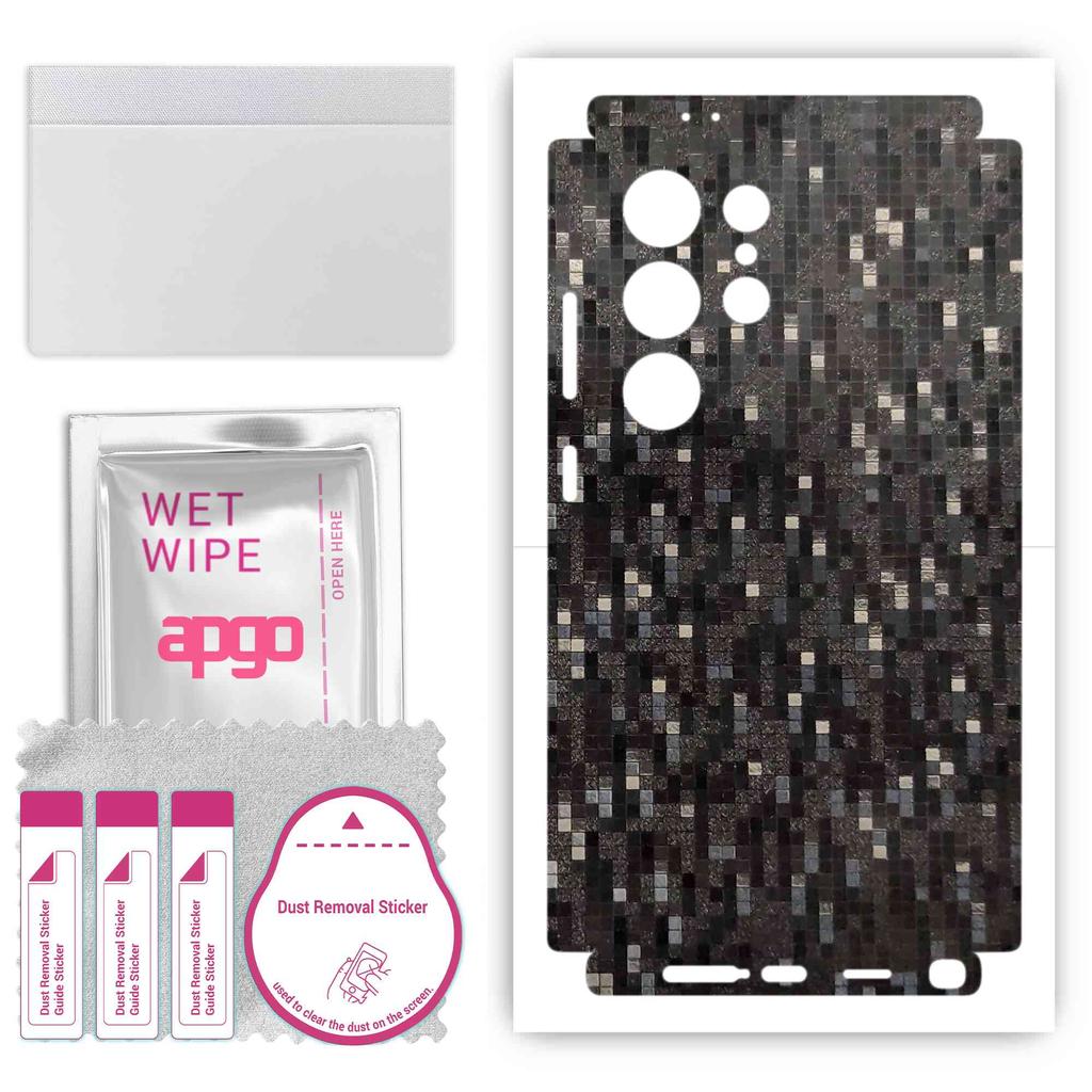 apgo Skin Sticker Film Foil Vinyl for the BACK+SIDES Compatible with Samsung Galaxy S24 Ultra, Scratch-resistant, Easy To Install - Carbon Black Pixel