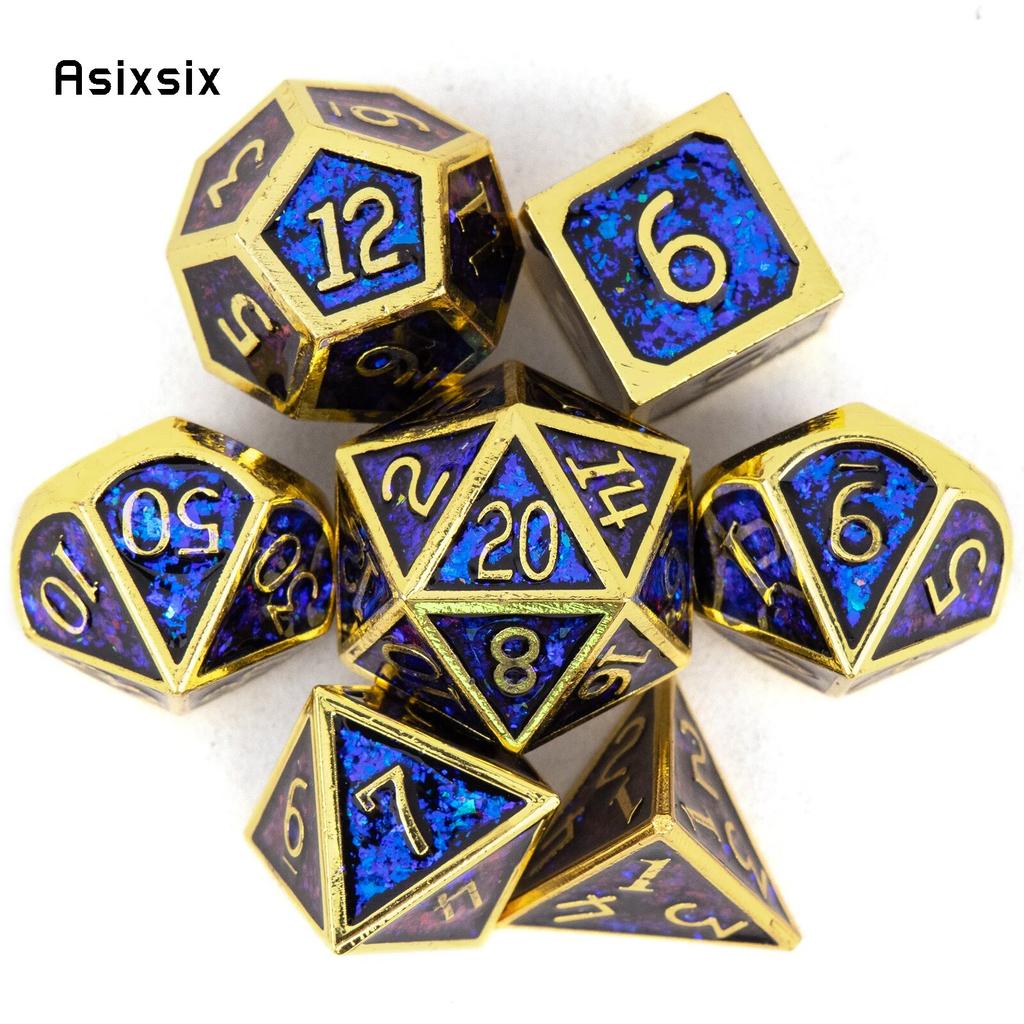 7 Pcs Blue Golden Standard Metal Dice Solid Metal Polyhedral Dice Set Suitable for Role-Playing RPG Board Game Card Game