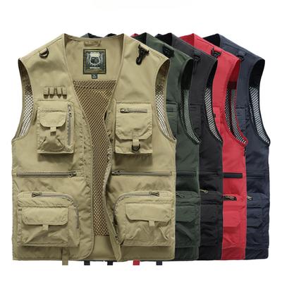Men Fall Winter Vest Thick Plush Sleeveless Zipper Closure V Neck Solid Color Multi Pockets Mid-aged Father Fishing Waistcoat Men Winter Vest Coat