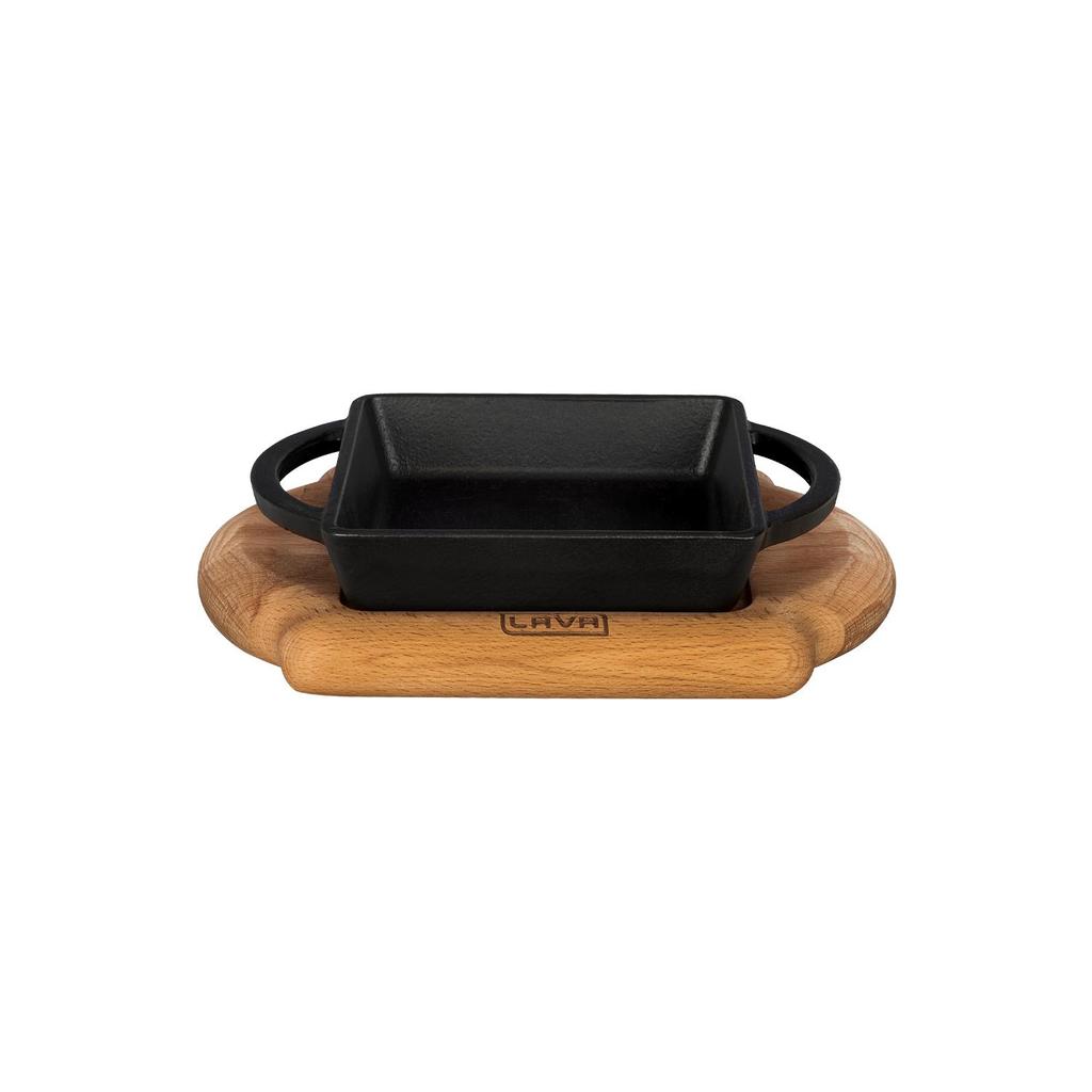 Lava Cast Iron Square Skillet. Dual Handle, With Wooden Platter 12X12cm.