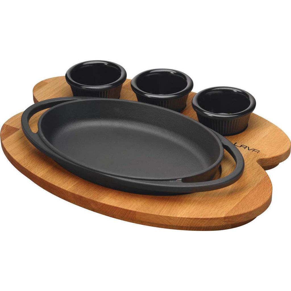 Lava Cast Iron Oval Sets With Wooden Serving Platters. Dual Handle, With Wooden Platter 21X14cm.