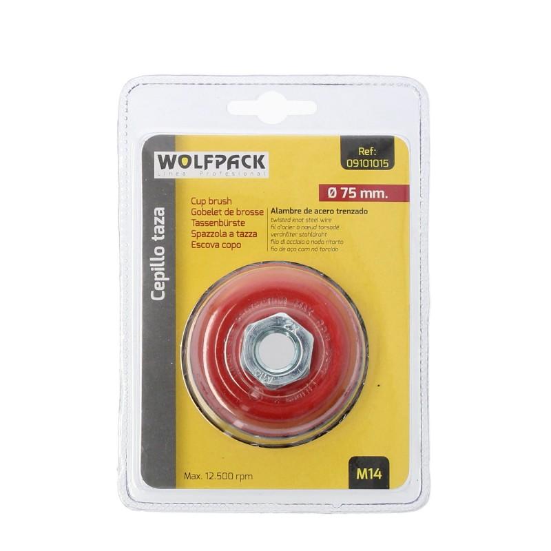 WOLFPACK PROFESSIONAL LINE - Cup Brush with Braided Steel Wire M14 Thread, Ø 75 Mm. Ø 0.50 Mm Wire.