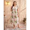 Spring and Summer Large Size Nightdress Women's Homewear Pajamas Lace Splicing V-neck Printed Short-sleeved Nightgowns