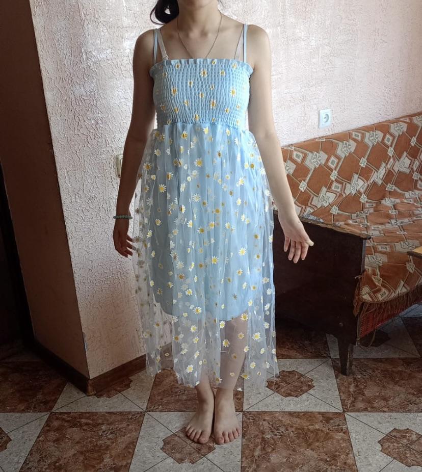 Korean Fashion Daisy Flower Print Mesh Party Dress Summer Two Layers Spaghetti Strap Vacation Midi Dress Beach Vestidos