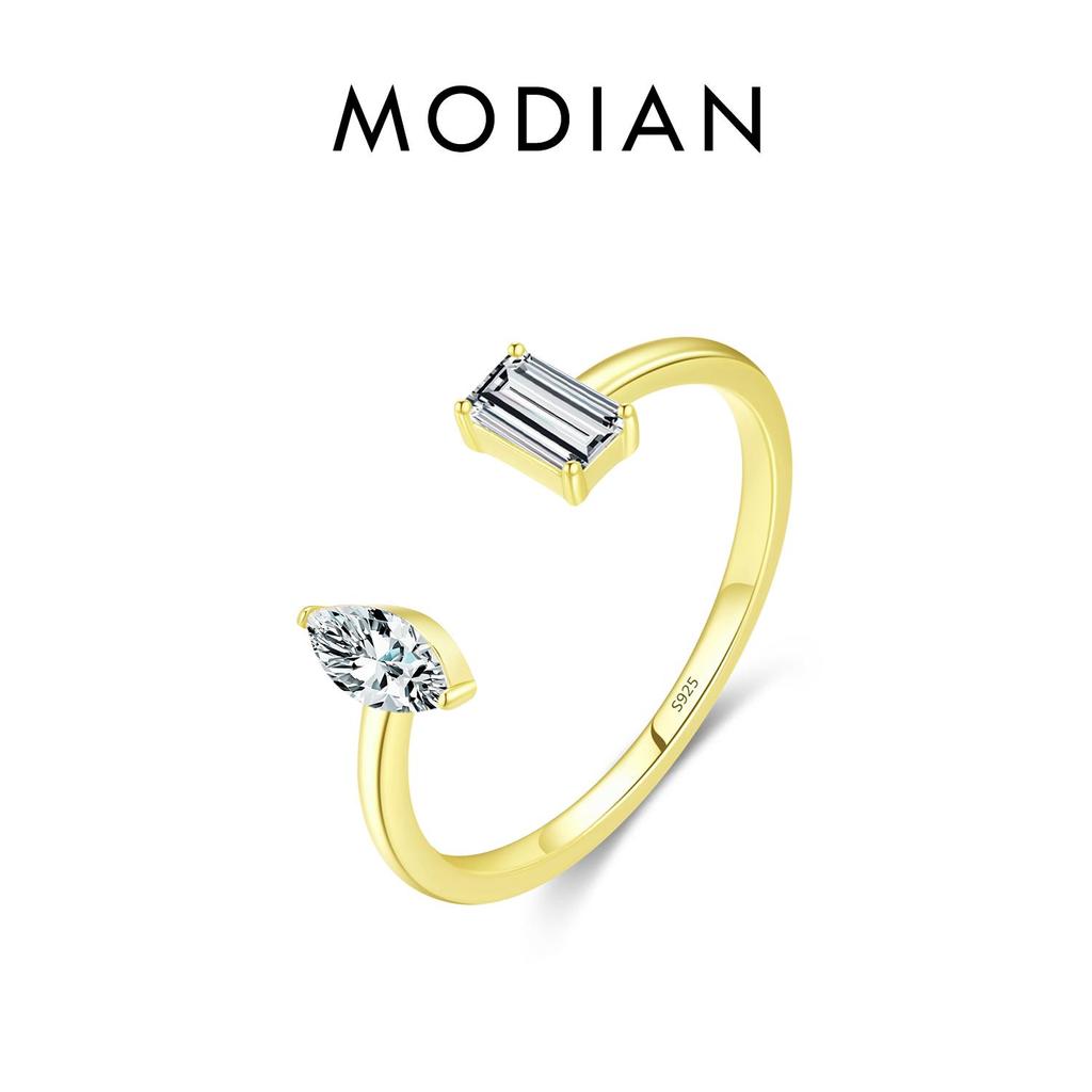 MODIAN 925 Sterling Silver Rhombus & Eectangle Open Size 6-9 Adjustable Finger Ring Gold Color Simple Jewelry For Women Gifts